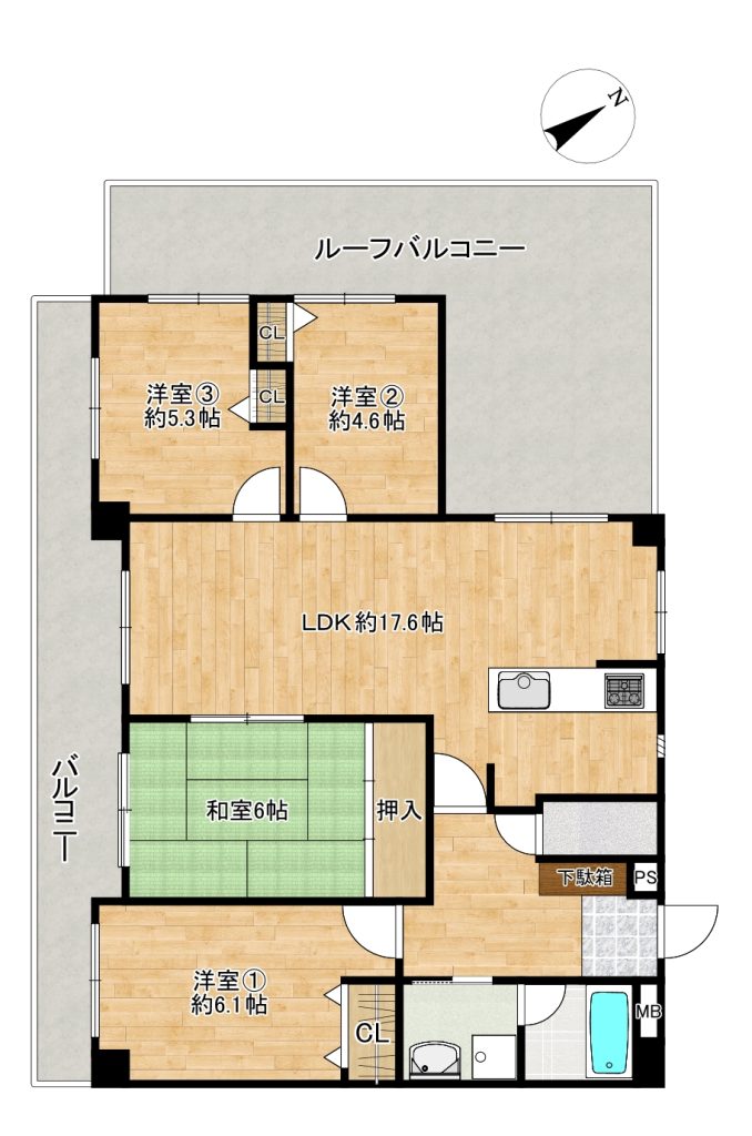 ヴェルビュ新大江東4階角部屋4LDK!ルーフバルコニー付きです!