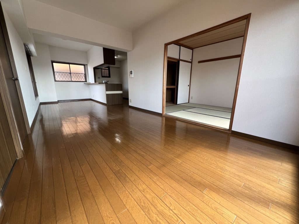 リビングは17.6帖と広々、25㎡あるルーフバルコニーと繋がっており、明るく空間を広く感じることができます!